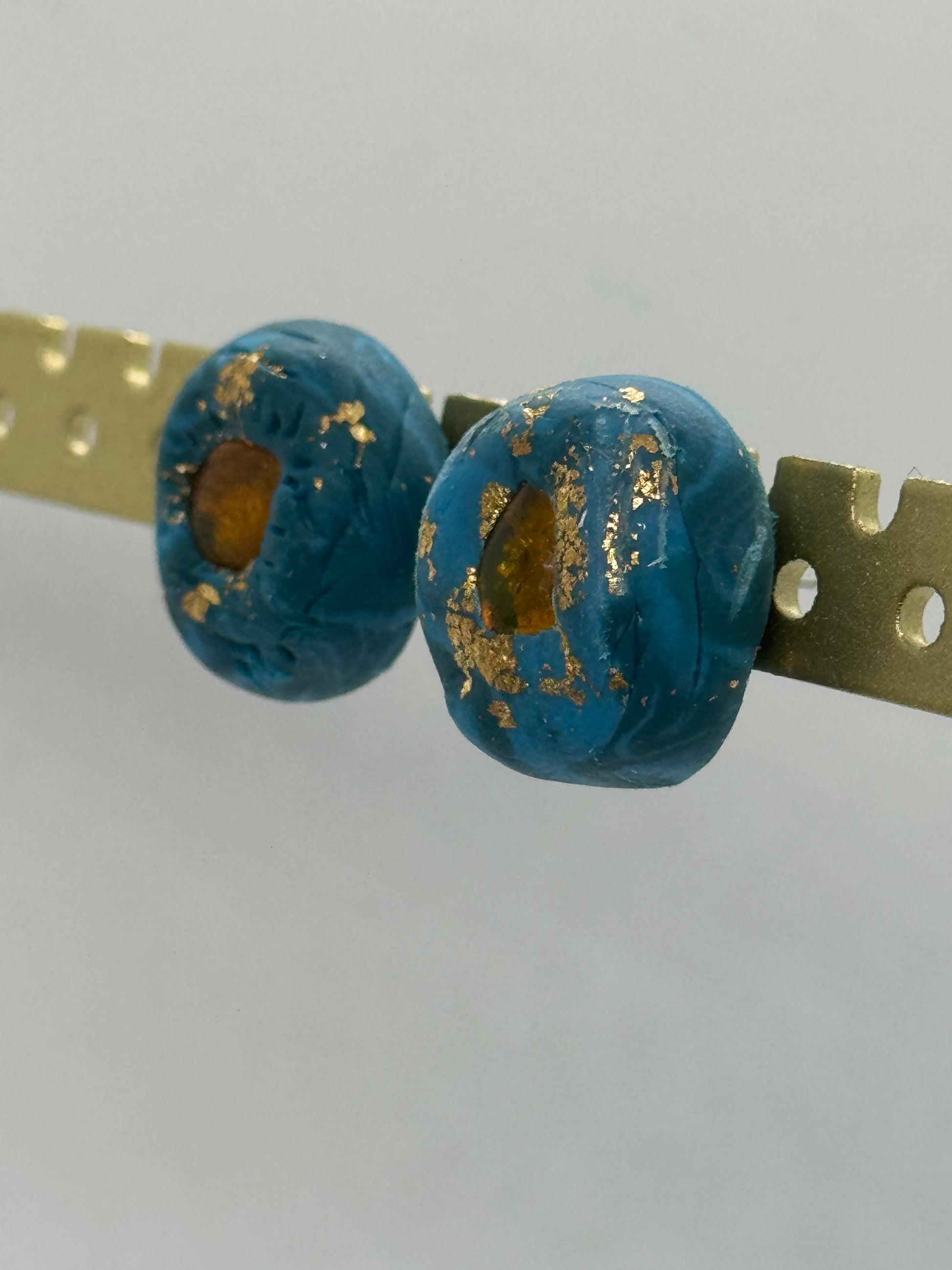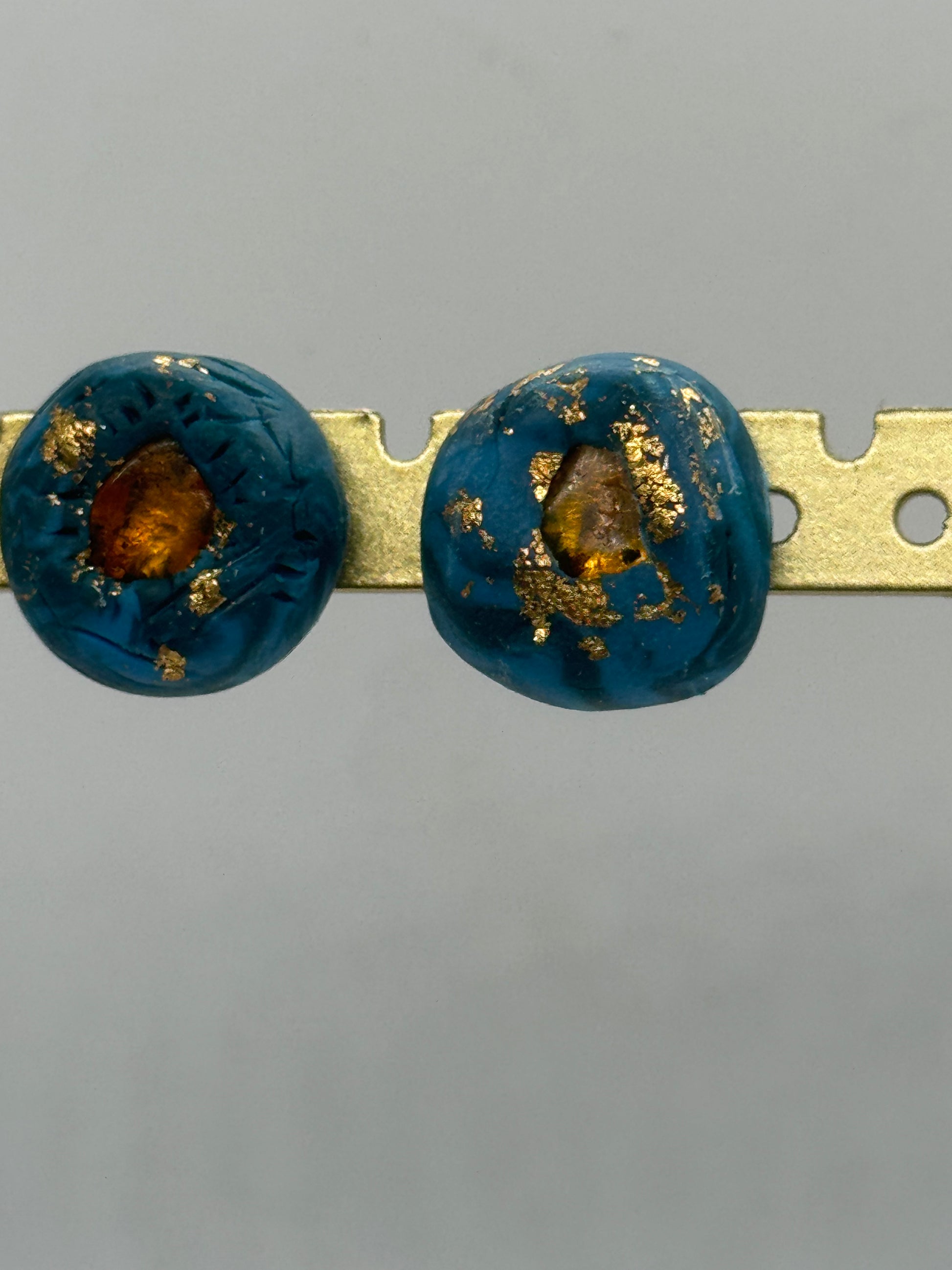 Amber and blue clay handmade stud earrings