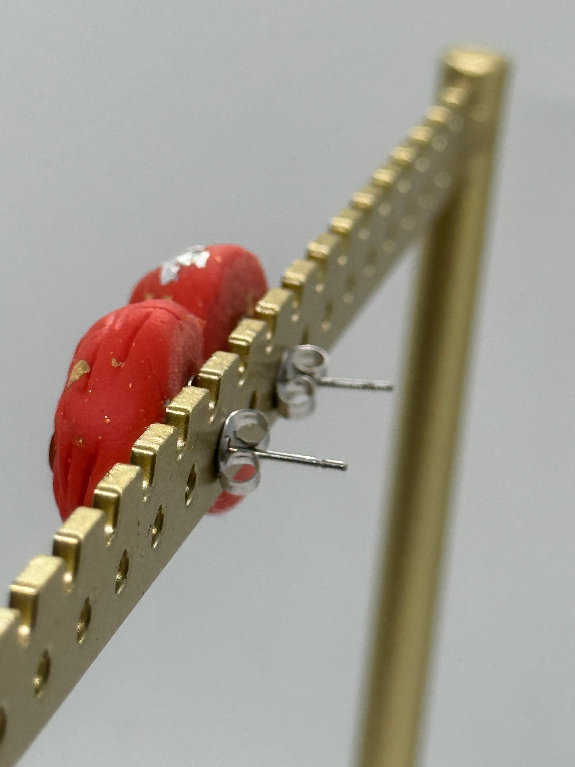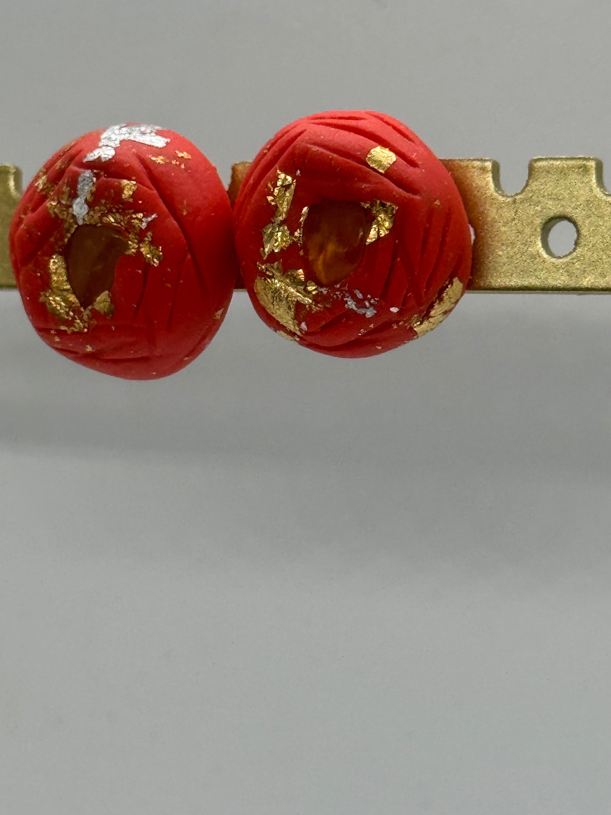 Amber and red clay handmade stud earrings