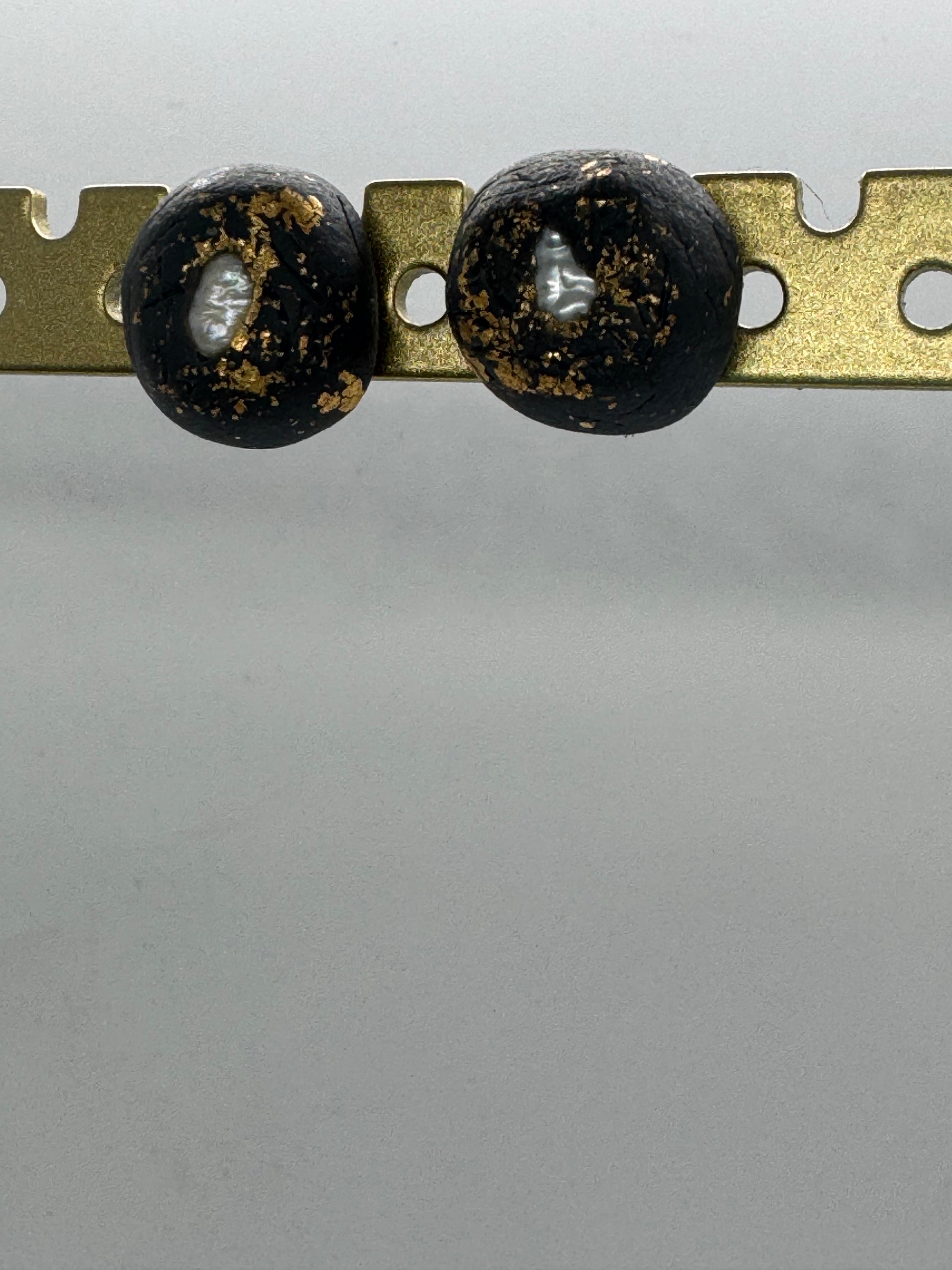 Black pearl clay stud earrings