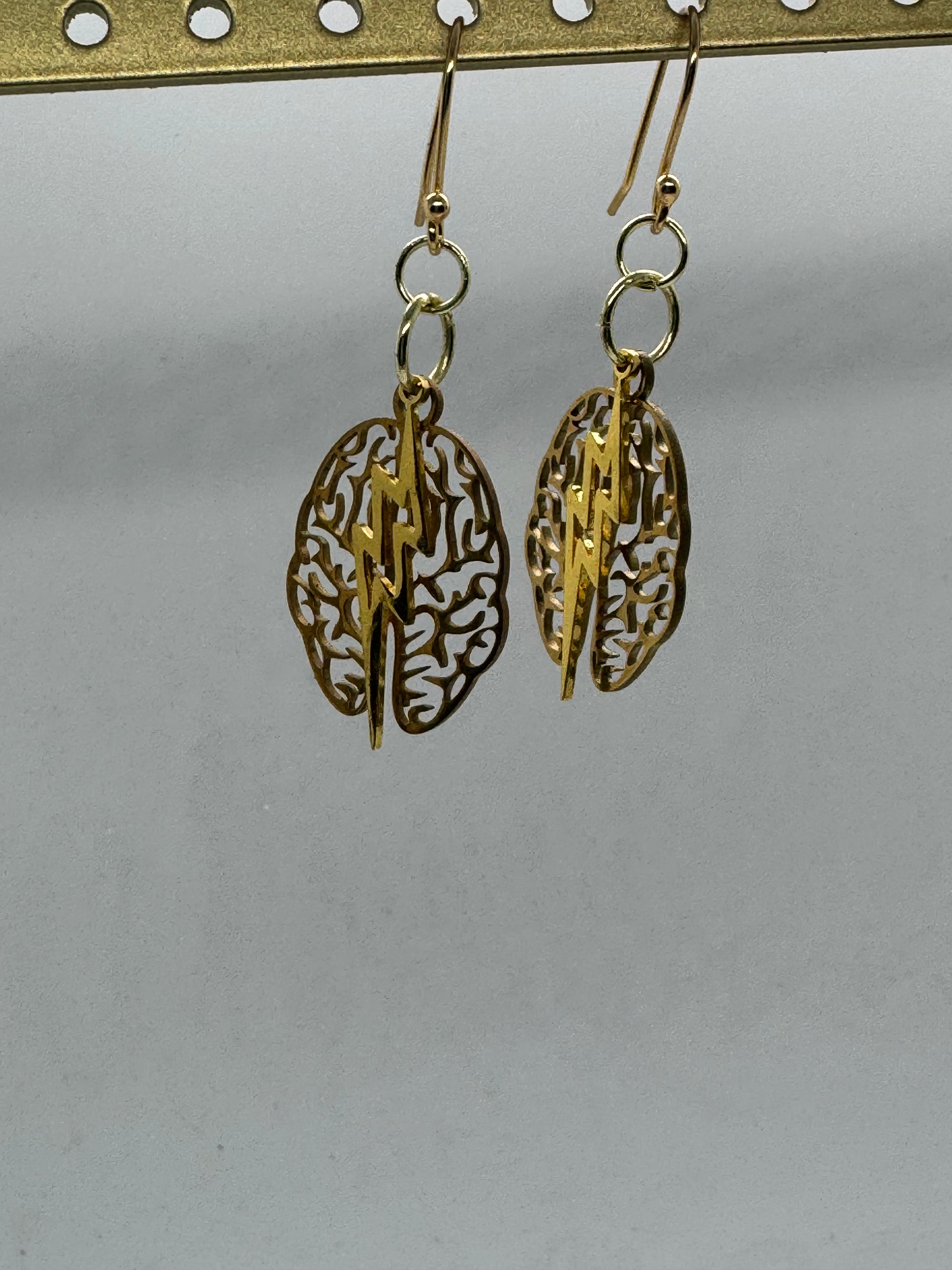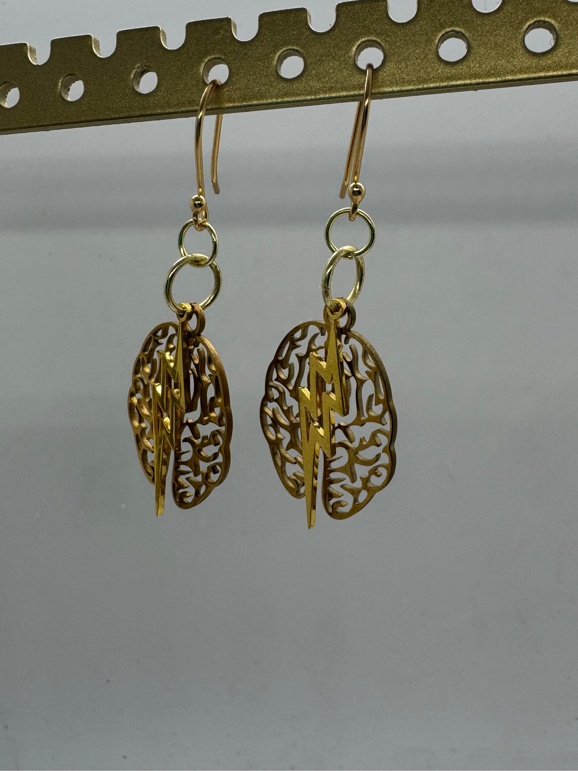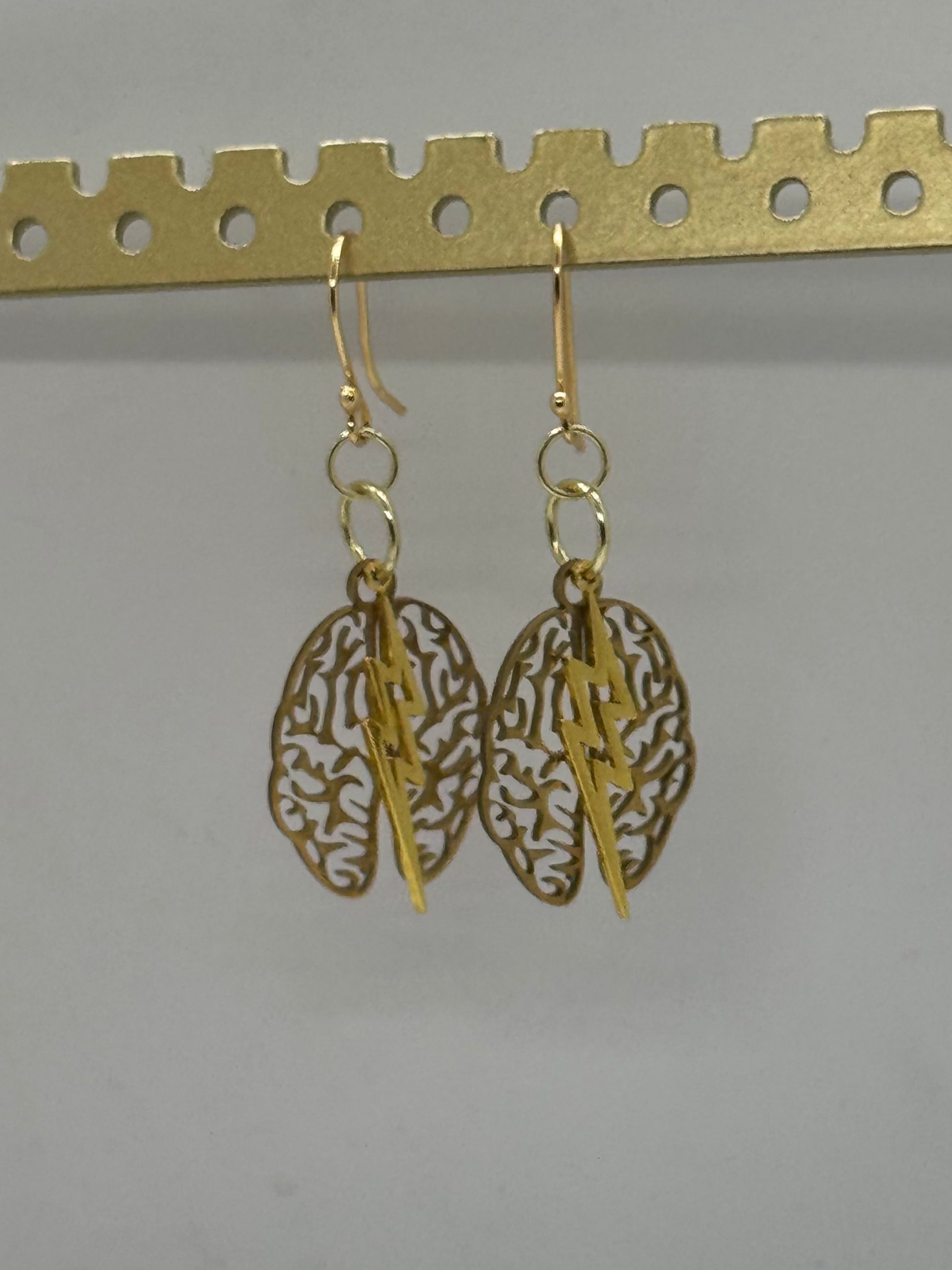 Gold brain and lightning earrings